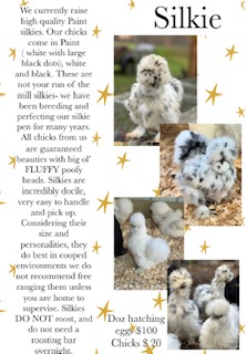 We currently raise high quality Paint Silkies