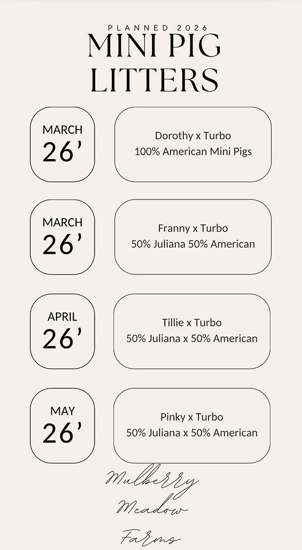 Please email us for more information or to reserve one of our Juliana Mini pigs.